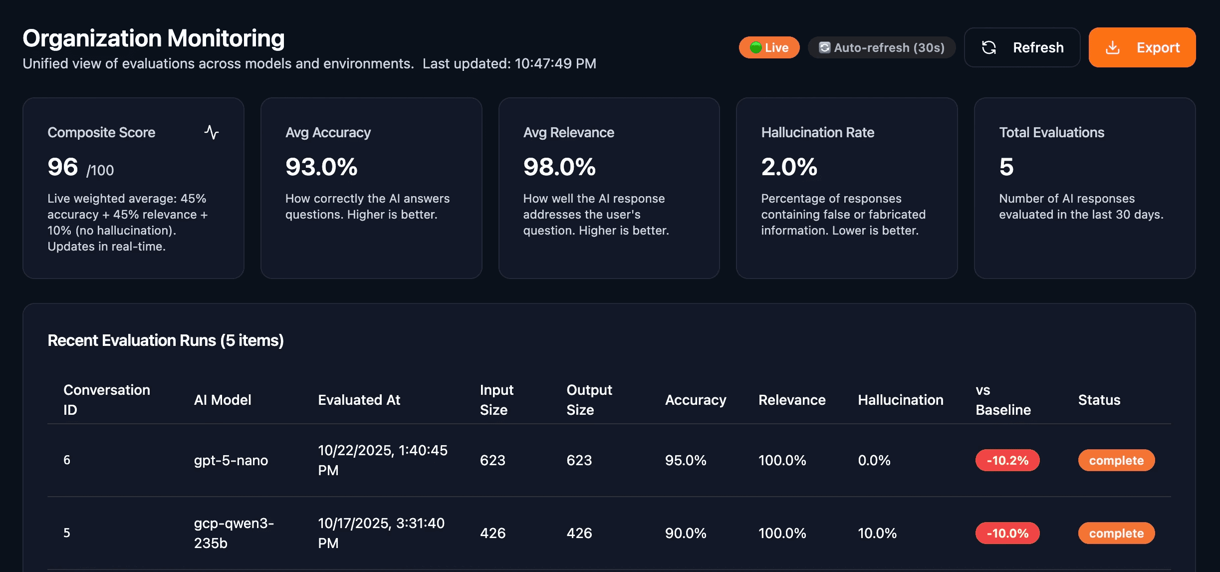 Immutable logs of every AI decision—which model, what data, when, why, and what it cost. Real-time monitoring with instant alerts. When auditors ask questions, you have forensic-grade answers in seconds.